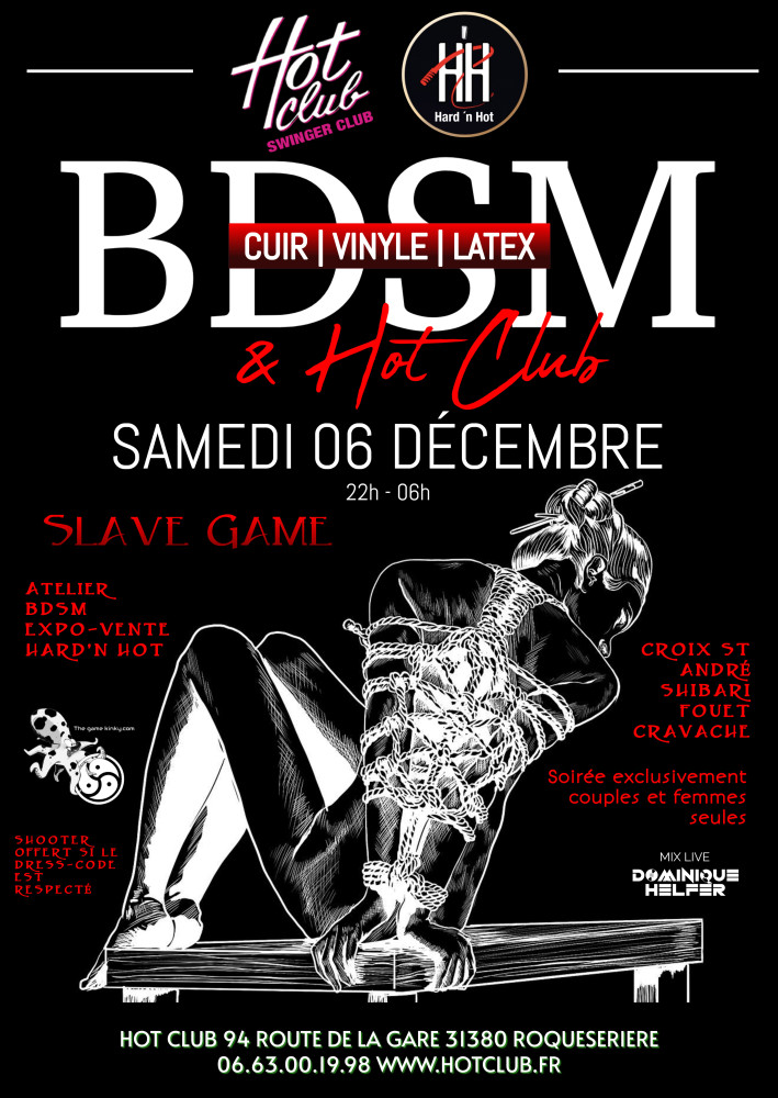 Soirée BDSM – Les Plaisirs du Cuir et du Pouvoir, Préparez-vous à une nuit intense où la cravache, l... Lire la suite...